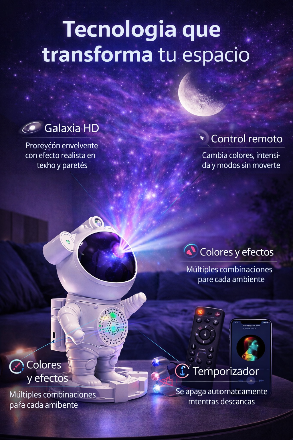PROYECTOR ASTRONAUTA CON BLUETOOTH